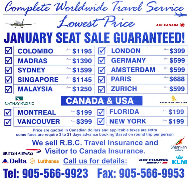 Welcome to Air Land Travel & Tours.   Your cost effective and complete worldwide travel service provider for all your traveling needs with more than ten years of experience in the travel industry.  We are located at the heart of Mississauga, Canada.  We offer variety of packages for most of the destinations around the globe.  Please take a look at some of our current promotions, and take advantage of it.  For more information, please call 905-566-9923.